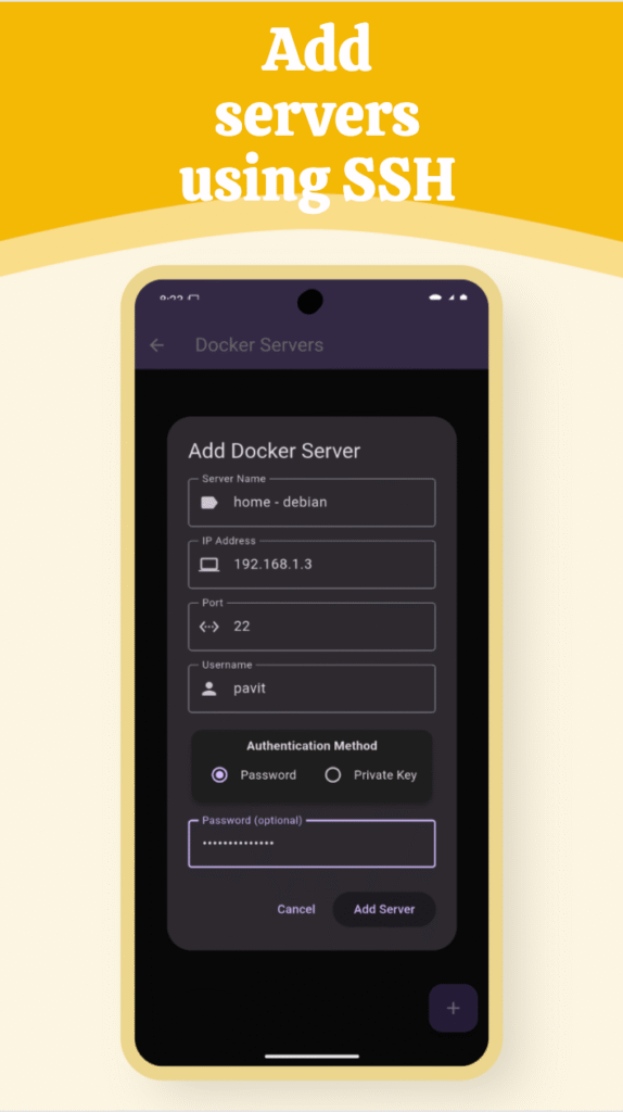 Docker Manager te va a permitir gestionar varios servidores, ya sea tu Raspberry Pi, un VPS, o cualquier otro servidor que tengas con Docker instalado. La aplicación se conecta a los servidores mediante SSH. Y en este sentido te recomiendo, por supuesto, que lo hagas mediante clave pública privada, que es la forma más sencilla y segura que puedes hacerlo.